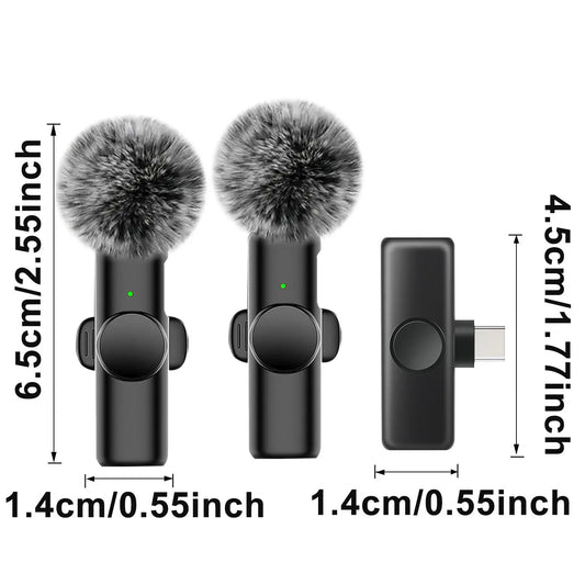 Wireless Microphone, USB C Wireless Microphone, Mini Microphone for Type-C Android Phones, Tablets, PC, Video Recording, Clip on Microphone with Clip and Noise Cancellation, Audio, Lavalier Wireless Microphone