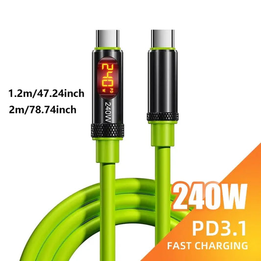 240W Super Fast Charging Cable, Type-C to Type-C Digital Display Charger, Rapid Charger Cable, Pd3.1 480Mbps High-Speed Data Transfer Line